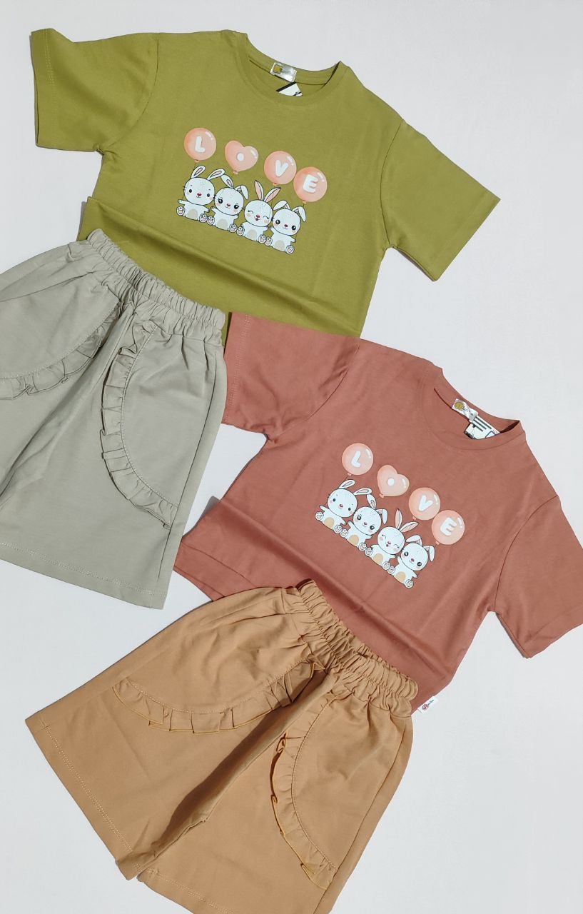 تیشرت شلوارک کتان دخترانه . تیشرت پنبه ، شلوار کتان . مناسب ۲ تا ۵ سال