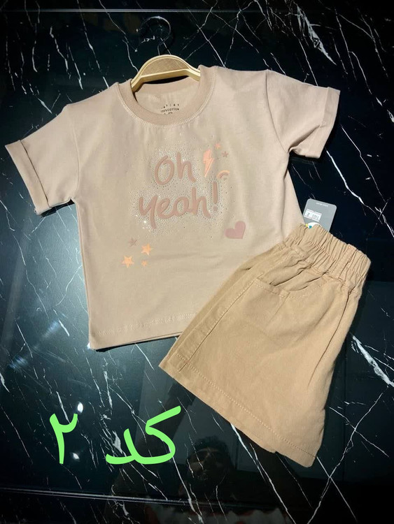 اندازه سایز ۲: قد تیشرت ۳۶ پهنا ۳۰ قد شلوارک ۲۶ کمر از ۱۹ تا ۳۲ سانت کشسانی داره
